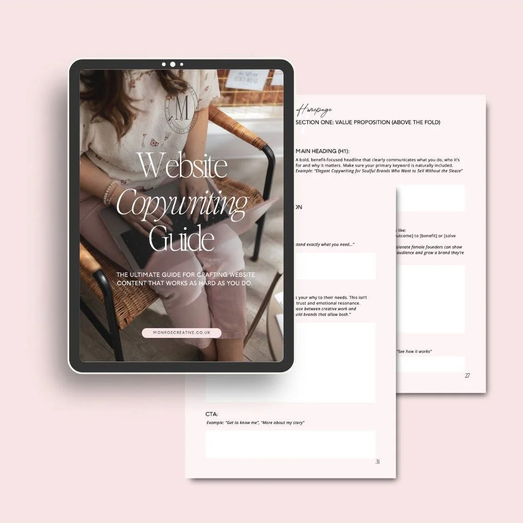 To be clear, I truly believe that the magic of a great copywriter could never be replaced and by the way, I can recommend some amazing word nerds if you want one!) but if the budget doesn’t allow it or you want to do it yourself, I’m hoping this post will be a helpful starting point to get you started. (If you're looking for structure, prompts and strategy to take this even further, I created a full guide to help - more on that at the end!)